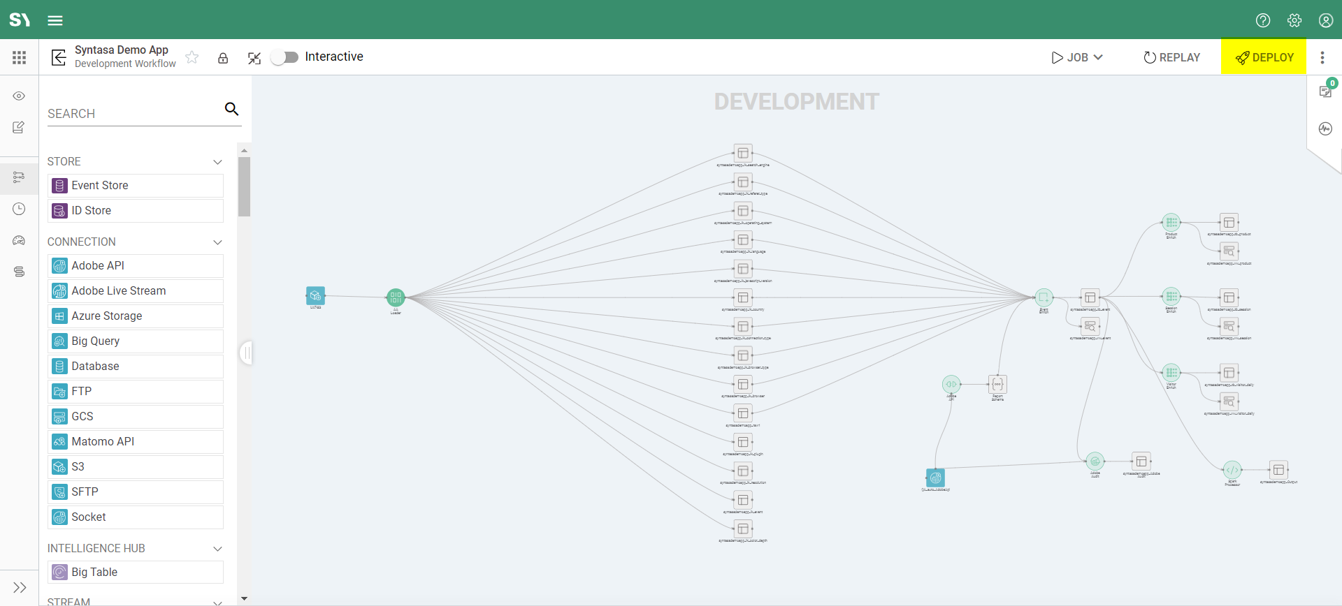 Deploy allows you to seamlessly move your data pipelines from development to production, where they can start processing real-time data and generate valuable insights. This facilitates the practical application of the models you've built within Syntasa.