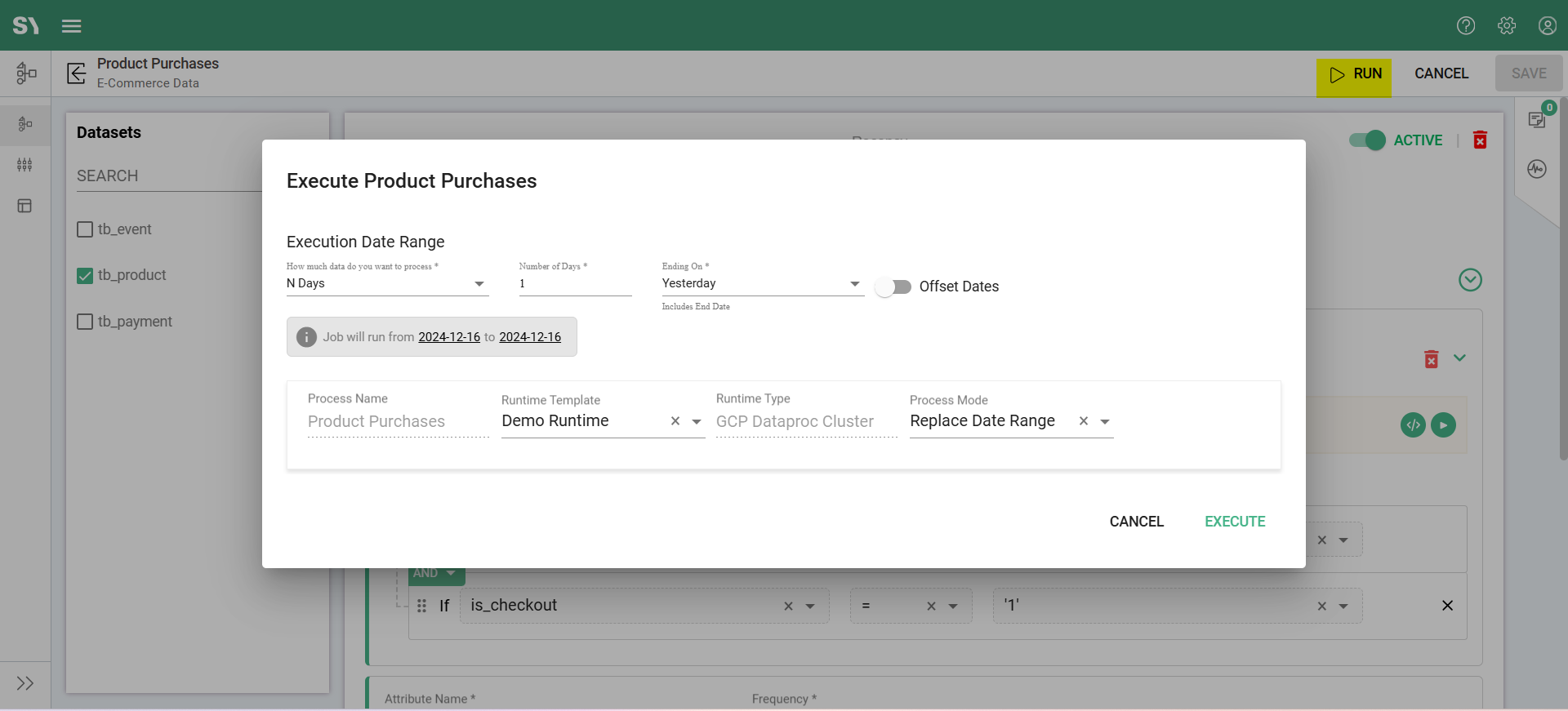 - Enter the job execution details, such as the execution date Range, Process Mode, Runtime Template, etc.
