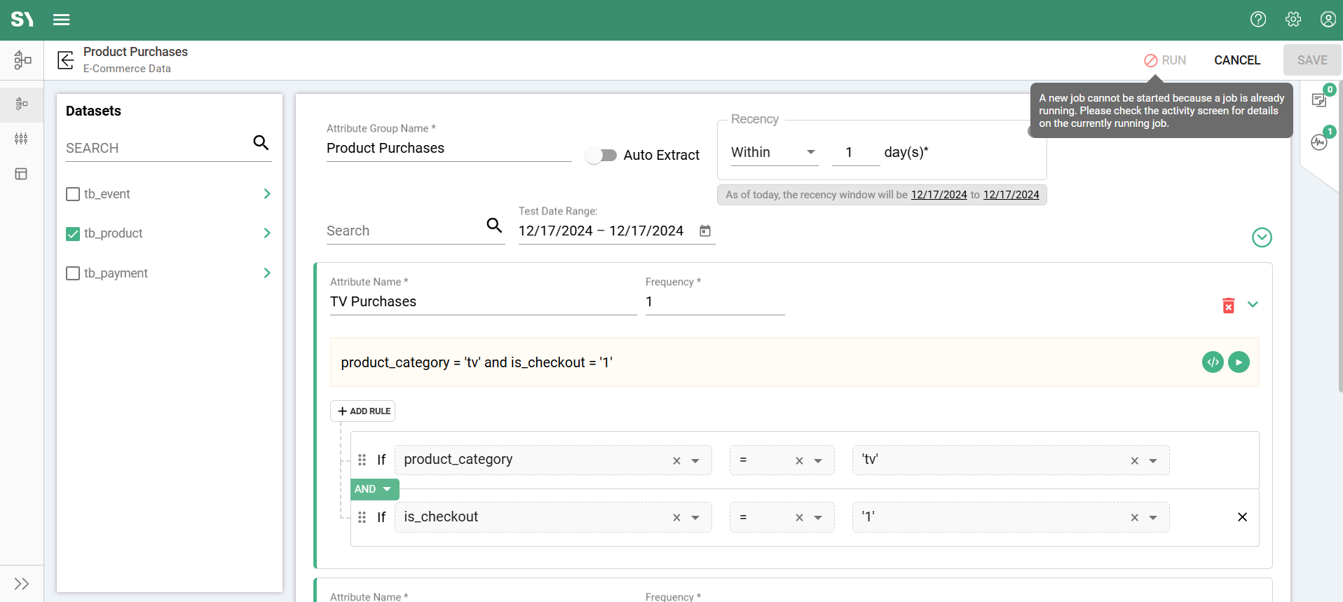 - When an ad-hoc job (i.e., Attribute-Run) is already running, no other attribute under the same data layer can be executed until the first job execution is completed.