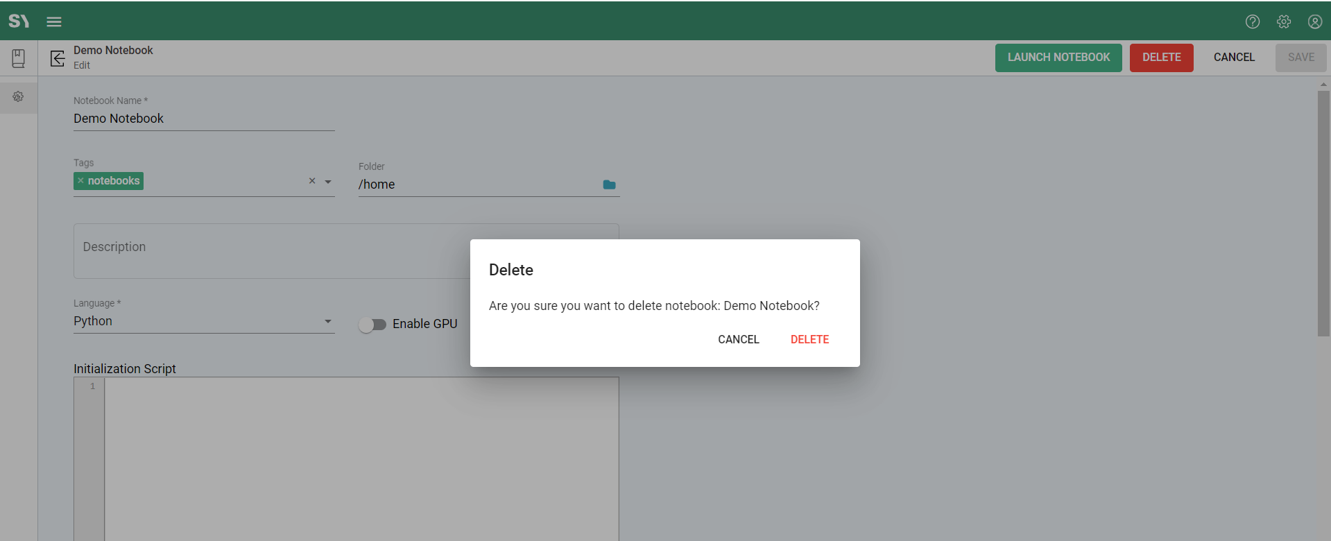 Deleting a Notebook