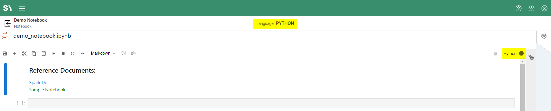 The Reference Documents section seen at the top of the notebook is a configurable space, by a system administrator, to present any desired message, sample code, or links to documentation. If configured, all notebooks will be created with this section.