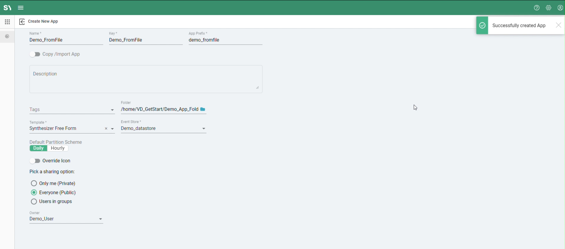 Select Template and Datastore: This guide uses the "Synthesizer Free Form Template" and a pre-configured "Event Store".