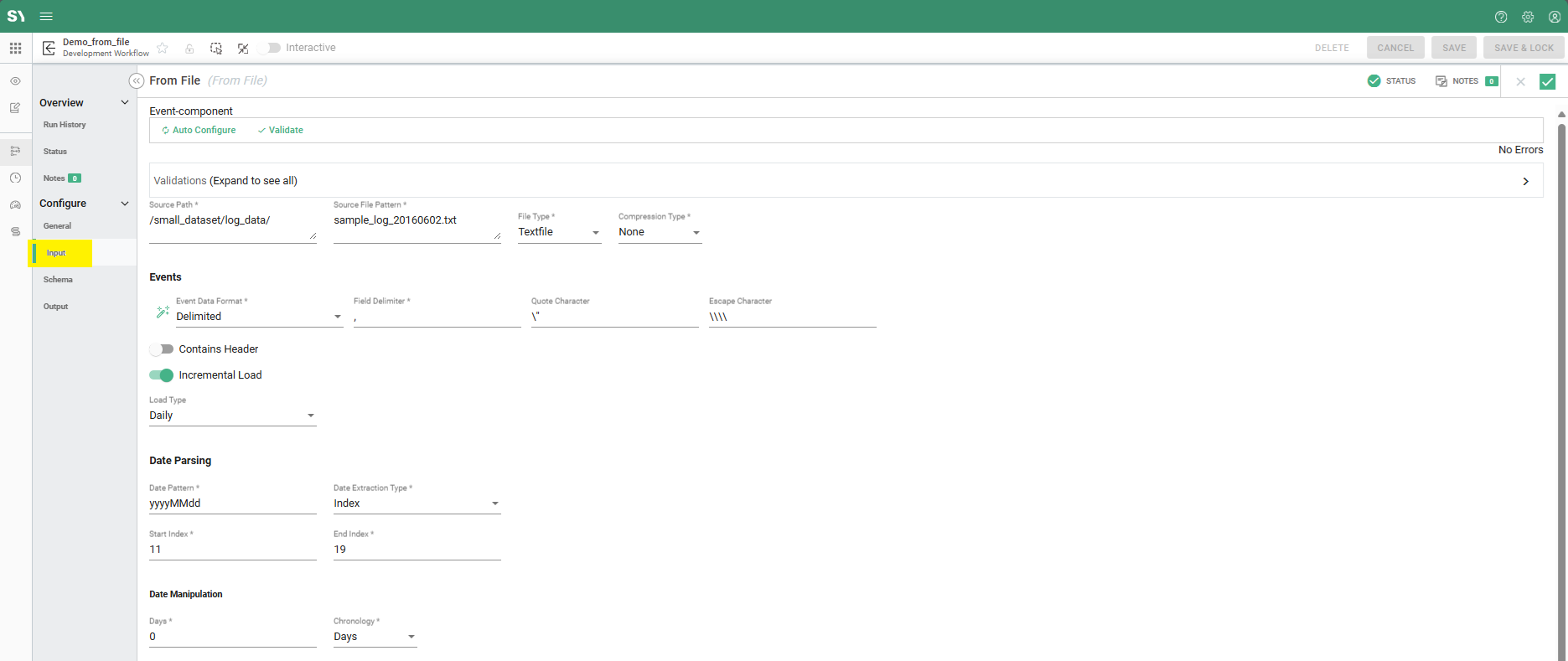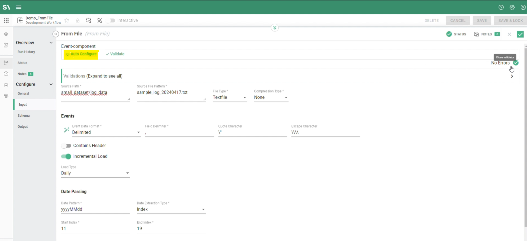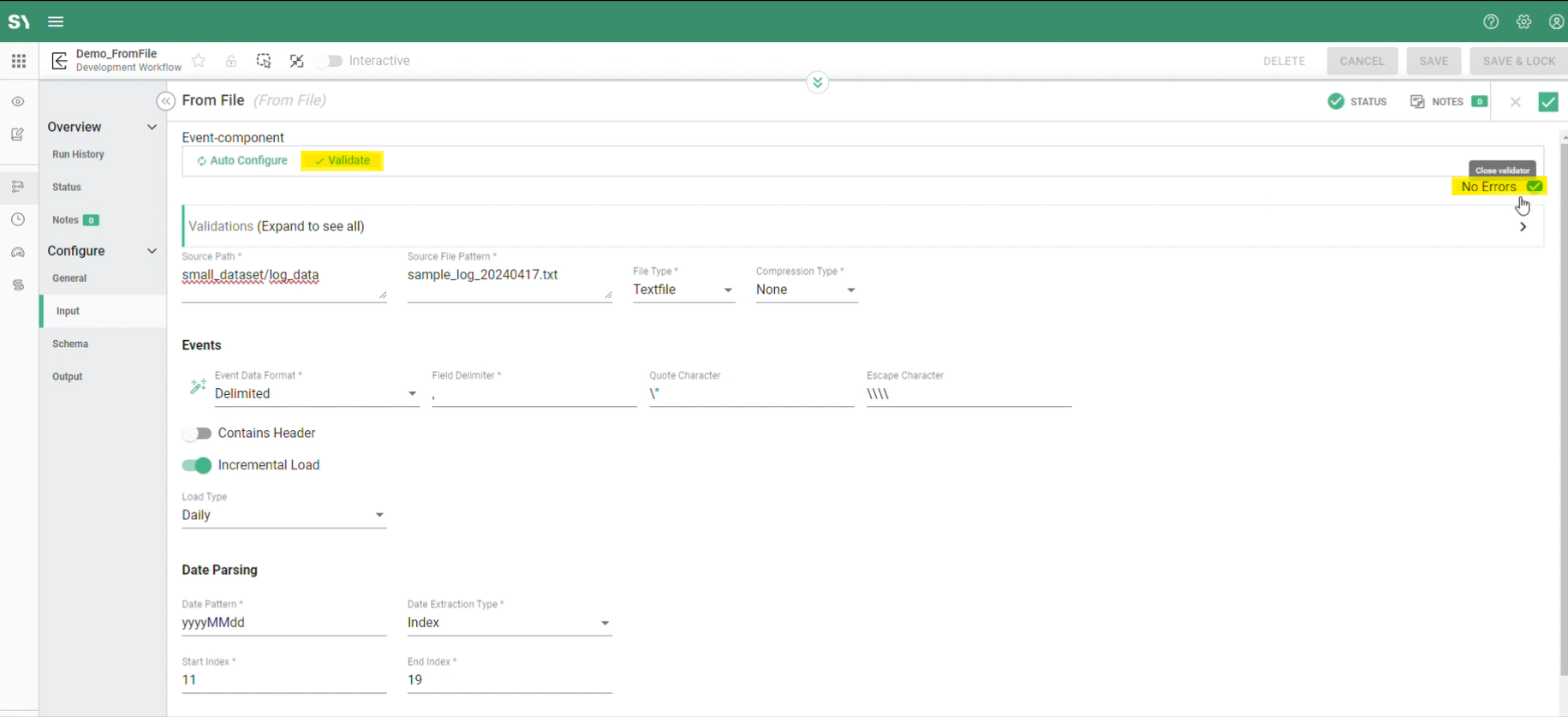 Defining Partition Columns: The schema section allows you to configure details related to partitioning your data. By default, SYNTASA might use a field named "file_date" as the partition column. Partitioning helps organize your data based on specific criteria for easier retrieval and analysis.