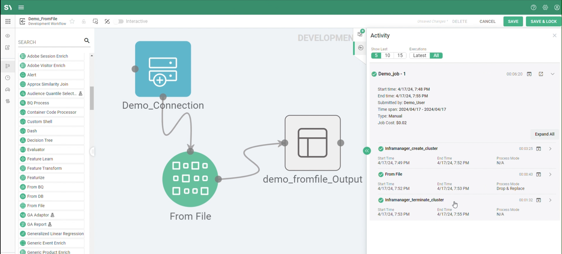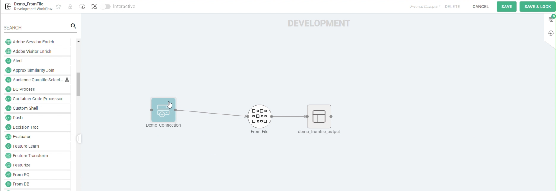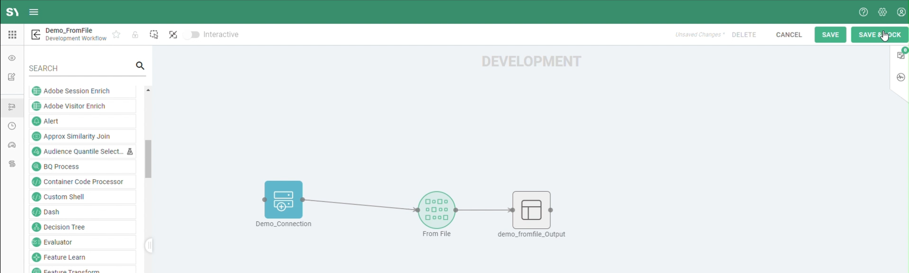 Save Your Work: Once you've configured the "FromFile" process and other elements to your satisfaction, click the "Save" button. This confirms and applies the changes you've made within the process settings. As a visual confirmation, the process icon color might change after saving.