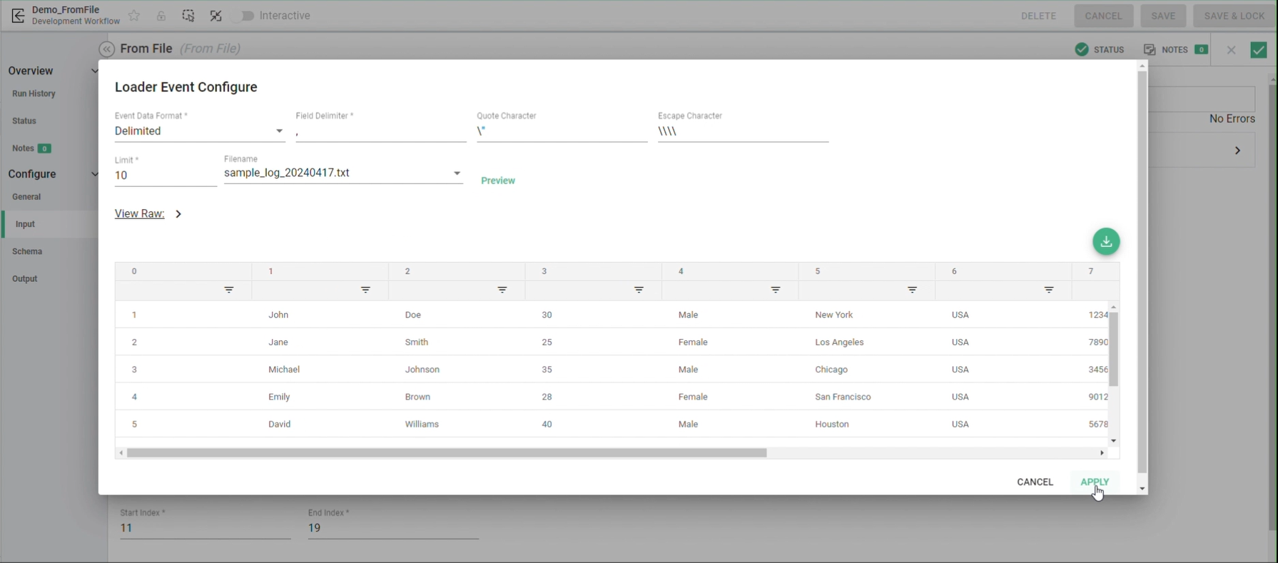 ) under Event: Use the "Magic Pen" tool, which allows you to preview a sample of your data structure (delimited values e.g. comma-separated values) directly from the source file.