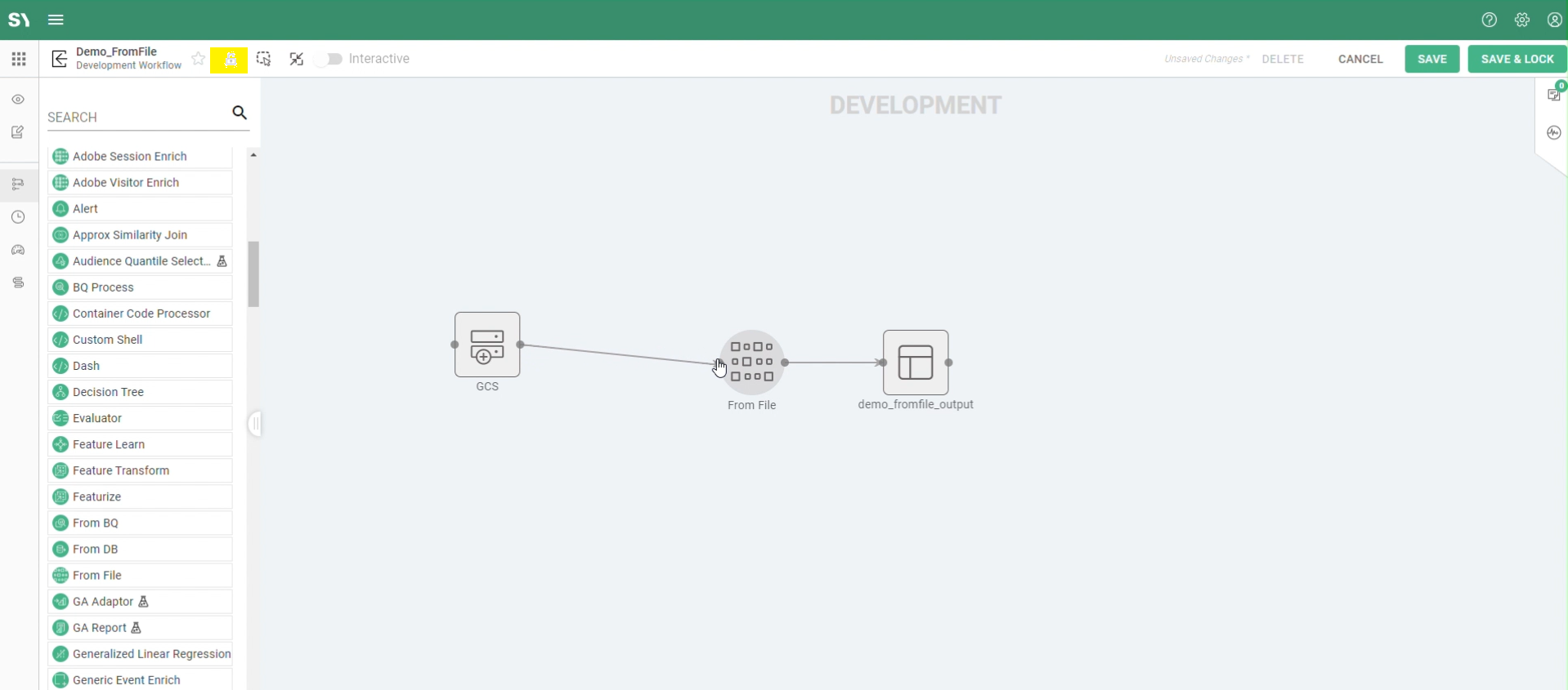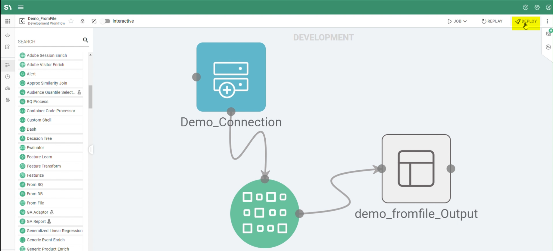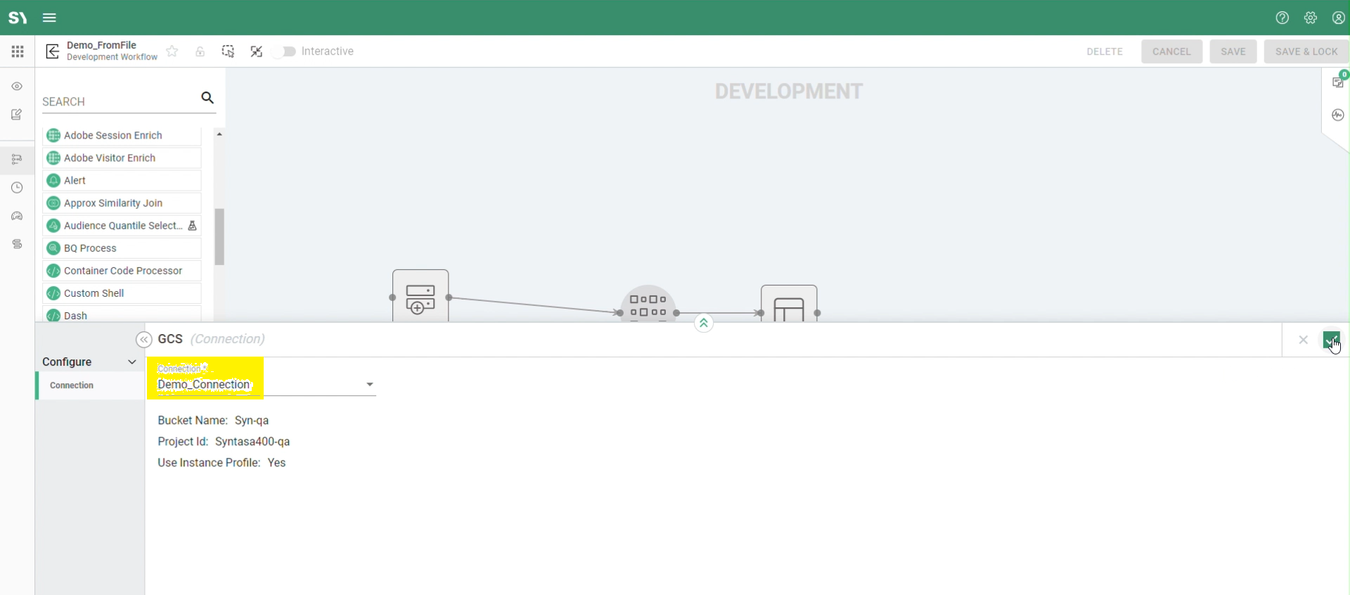 - Connecting the Dots: Look for corresponding icons on both elements. These icons represent connection points for data flow. Drag your cursor from the output end on the "GCS Connection" element and connect it to the input end on the "FromFile" process. This establishes the data flow between these elements in your pipeline.