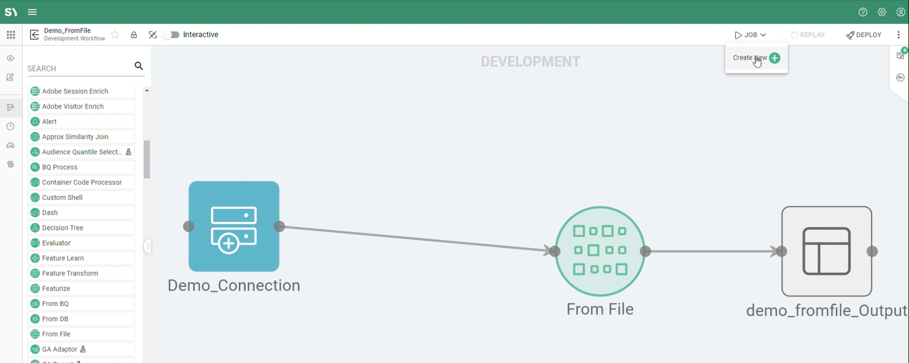 Including the Process: Choose the option "Add New" to incorporate the configured process (likely the "FromFile" process) into your newly created job.