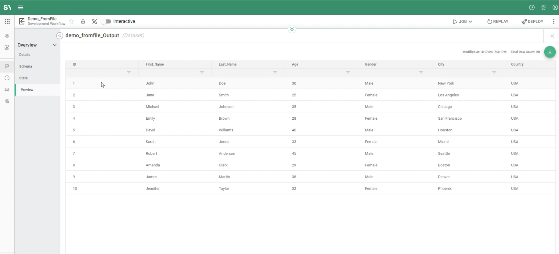 Examining the Output: Once your job finishes running successfully, you have the option to delve into the processed data. Click the "Output" icon to access the details.