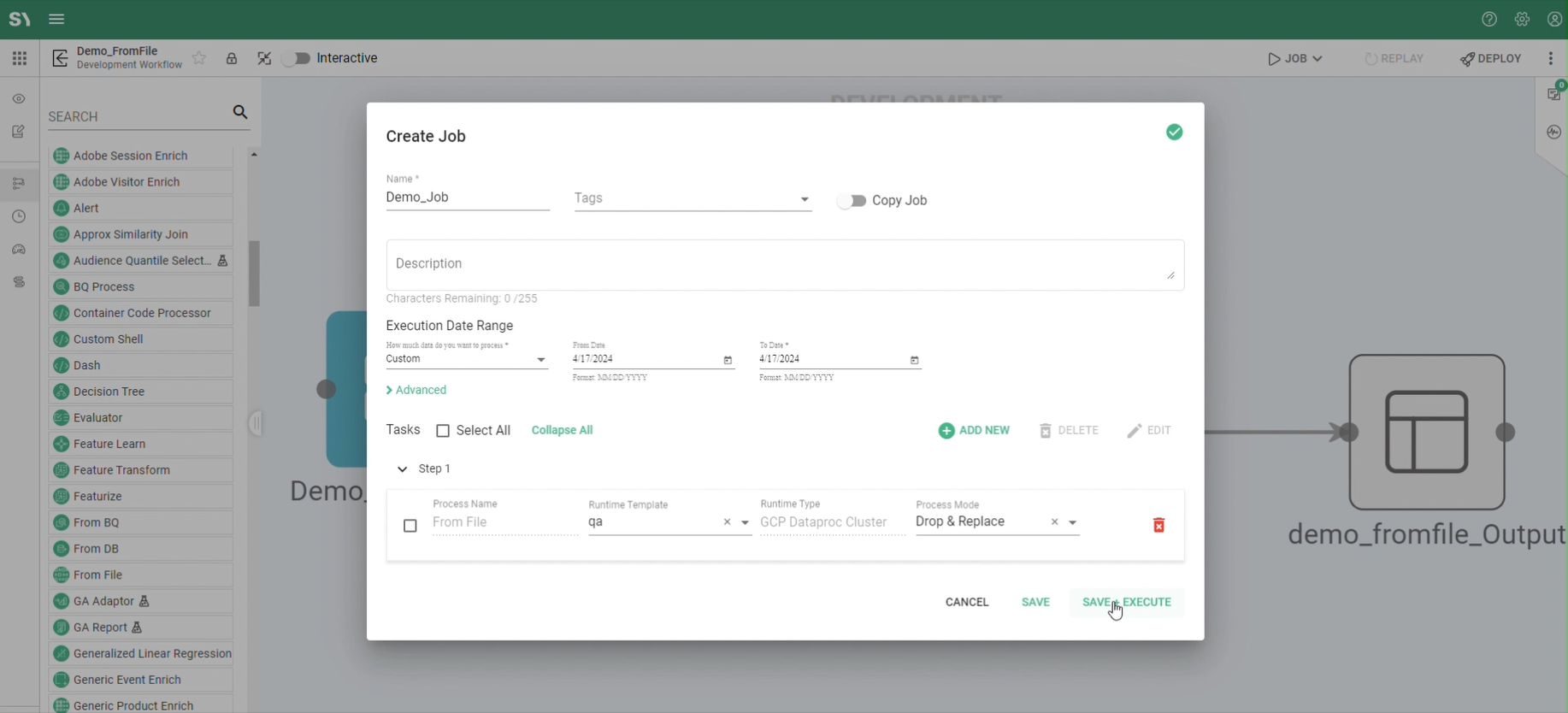 Save and Run the Job: Once you've configured everything for the job, click the "Save and Execute" button. This action triggers the job execution process.